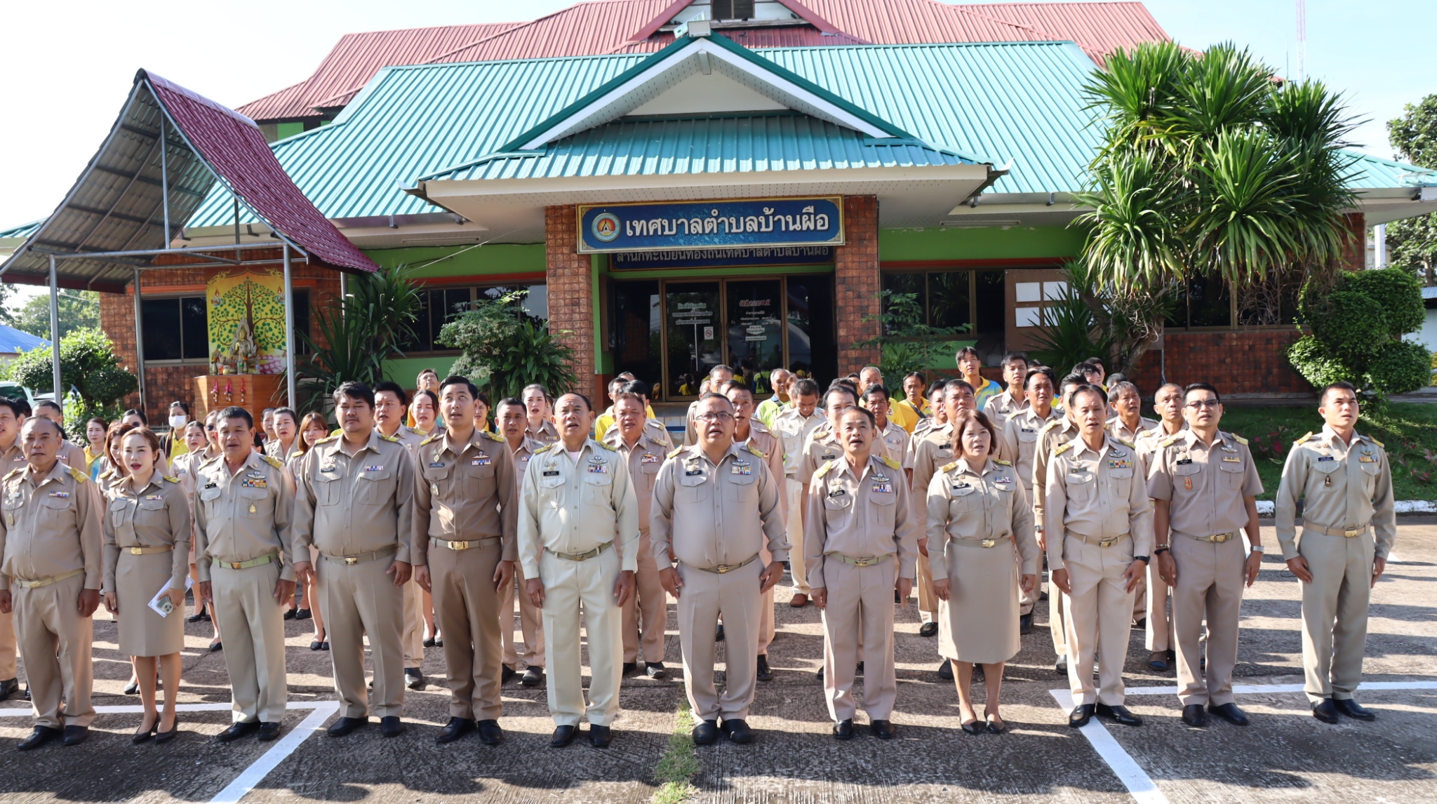 วันที่ 6 ตุลาคม 2568 นายไวพจน์ แสงเสนาะ นายกเทศมนตรีตำบลบ้านผือ พร้อมด้วยคณะผู้บริหาร สมาชิกสภาเทศบาล สมาชิกสภาองค์การบริหารส่วนจังหวัดอุดรธานี พนักงานเทศบาล ลูกจ้างประจำ และพนักงานจ้าง เข้าแถวเคารพธงชาติและสวดมนต์ไหว้พระ บริเวณหน้าเสาธง สำนักงานเทศบาลตำบลบ้านผือ พร้อมกับกล่าวทักทายและให้โอวาทในการปฏิบัติงานแก่พนักงานที่เข้าร่วมกิจกรรมในวันนี้