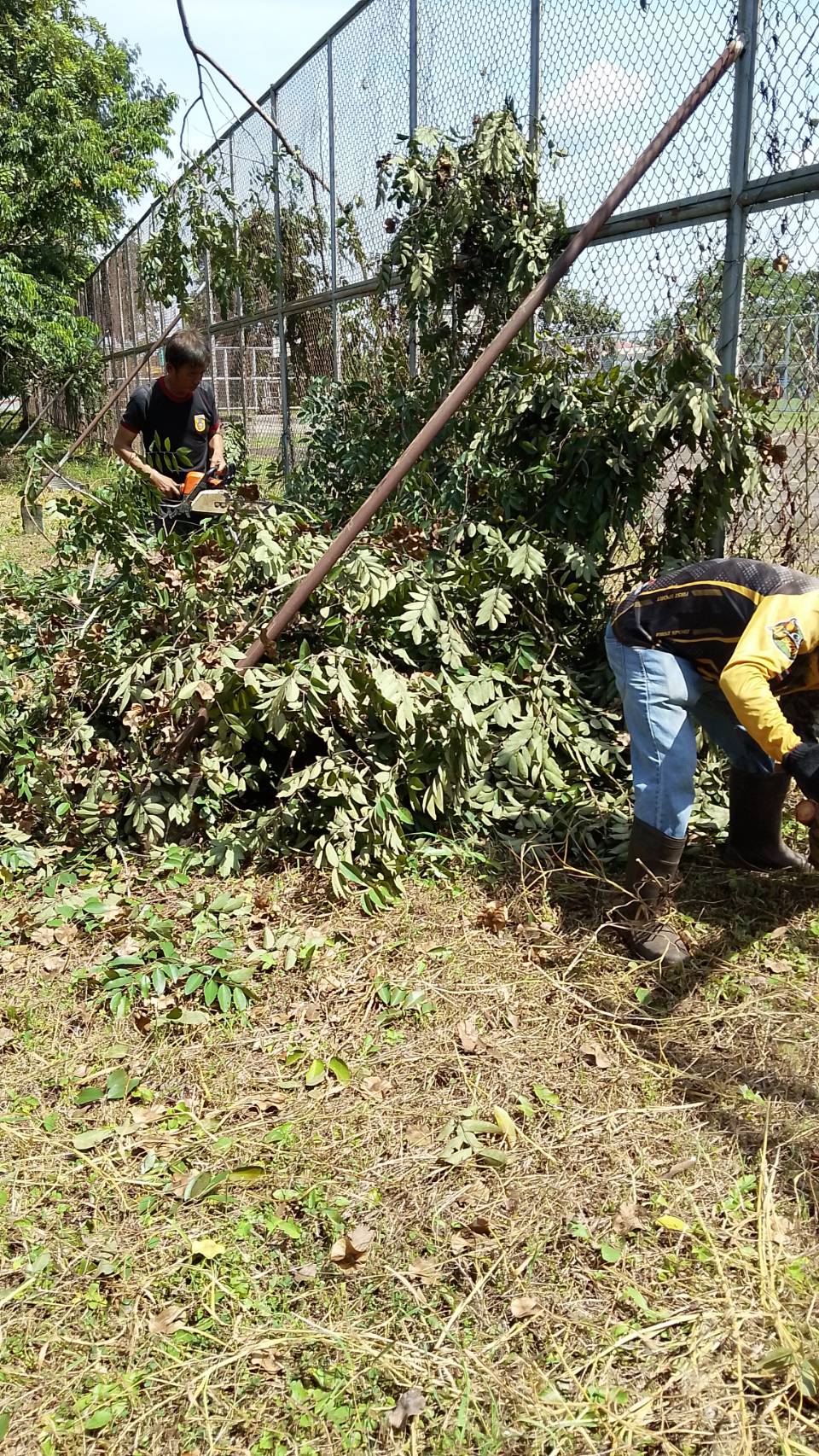 ตัดต้นไม้รอบๆ สนามกีฬาเทศบาลตำบลบ้านผือ เพื่อปรับปรุงภูมิทัศน์ให้สวยงาม