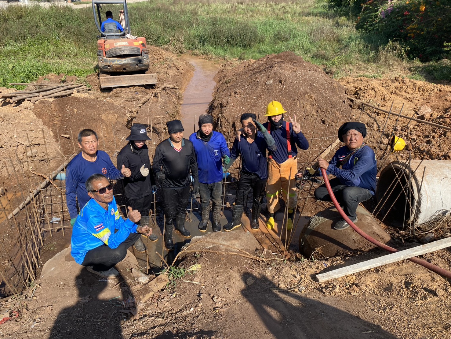 นายไวพจน์ แสงเสนาะ นายกเทศมนตรีตำบลบ้านผือ ลงพื้นที่ติดตามงานที่มอบหมาย เจ้าหน้าที่งานป้องกัน กองช่าง และกองสาธารณสุขฯ ลอกท่อระบายน้ำข้ามทาง แยกโนนประดู่ บ้านหัวคู หมู่ 1